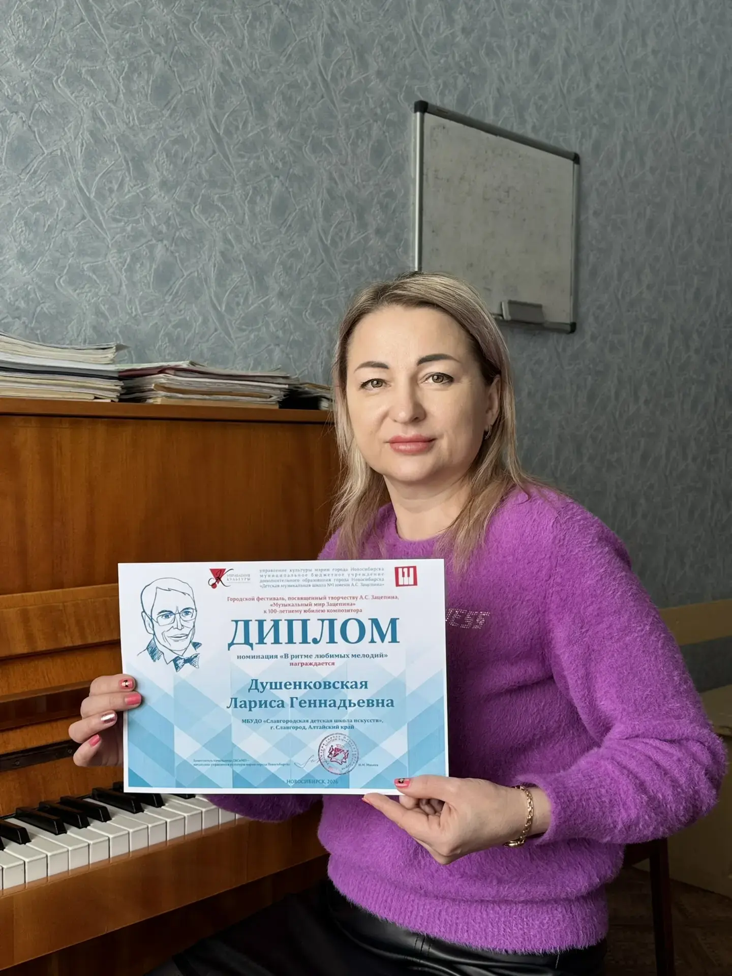 Преподаватель фортепианного отделения (Душенковская Л.Г.) приняла дистанционное участие в городском фестивале (г. Новосибирск) «Музыкальный мир Зацепина». Наша коллега представила свою работу в номинации «В ритме любимых мелодий»! Современные технологии позволяют нам быть в курсе событий и делиться творчеством, где бы мы ни находились. Исполнение Ларисы Геннадьевны — это дань уважения великому композитору и прекрасный пример для наших учеников: творить можно всегда и везде! Поздравляем с успешным участием и желаем но ... Читать дальше »