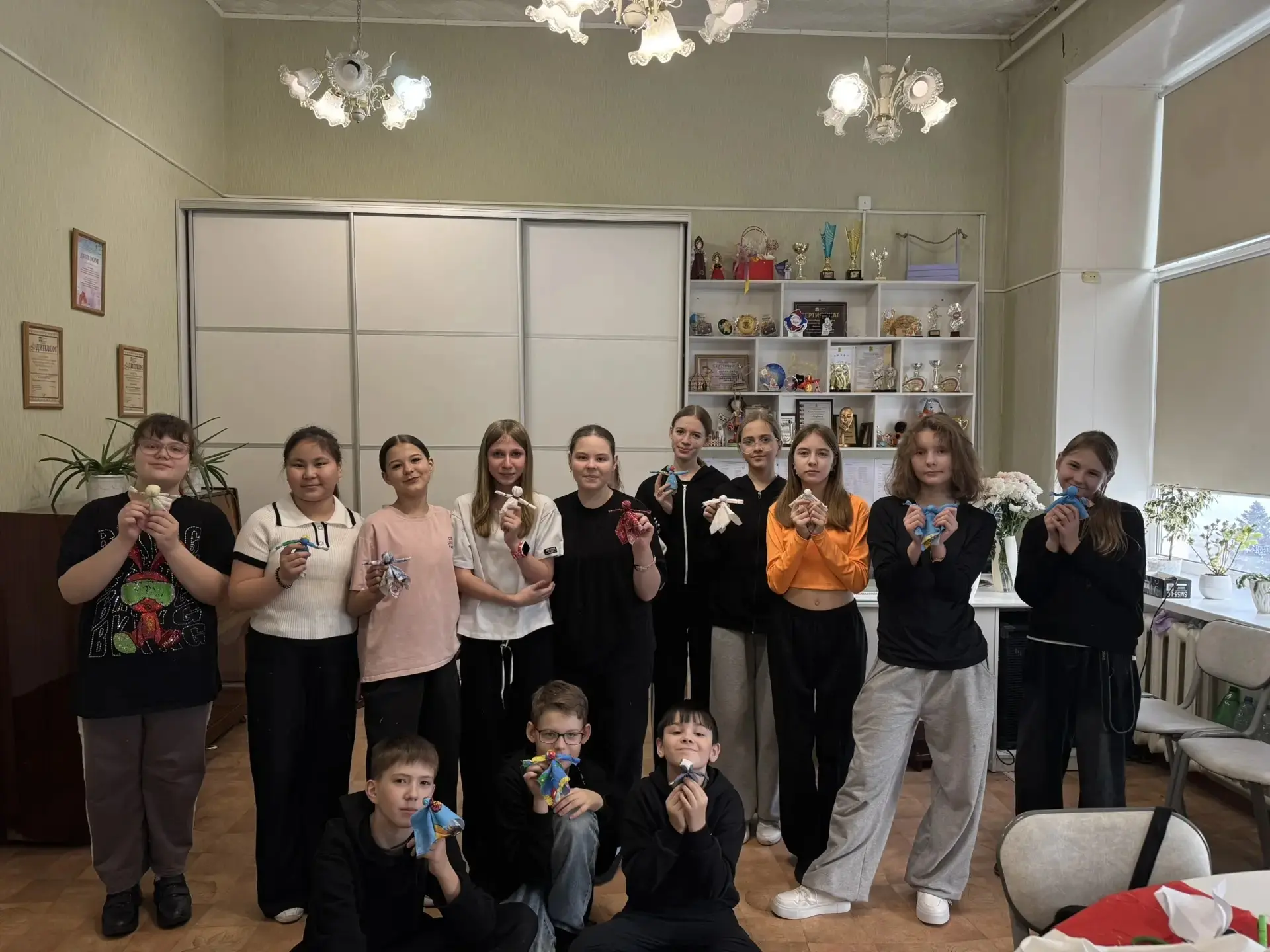 Вместе с преподавателем юные артисты погрузились в старинную традицию — создание кукол-мотанок. Это не просто рукоделие, а целый ритуал! Каждая ниточка, каждый узелок наматывался с добрыми мыслями о весне, солнце и будущем чуде.